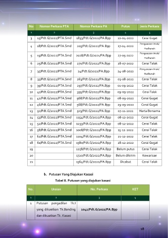 No Nomor Perkara PTA Nomor Perkara PA Putus Jenis Perkara